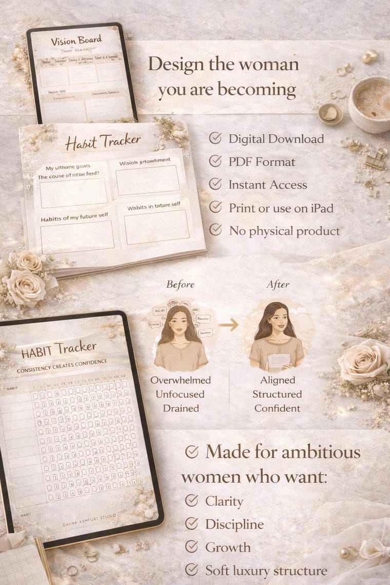 What’s inside: habit tracker, weekly reflection & vision board pages -