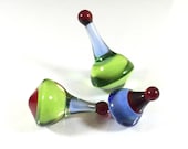 5 out of 5 starsThese are excellently crafted spinning Boro Tops. The coloring is beautiful and they work perfectly. Each top is signed and dated by the artist. These tops can also be used very easily as carb caps for quartz bangers.
