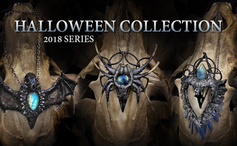 A series of pendants I created for Halloween 2018, these feature real pheasant skulls.