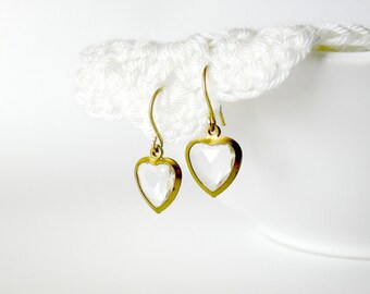 Romantic bridesmaid dangle gold heart earrings- Delicate drop earrings- Ideal Bridesmaids gift- Simple jewelry- elegant drop earrings