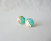 Mint gold stud earrings- Gold dipped mint posts- Delicate feminine jewelry- Gifts under 20