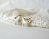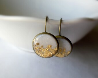 Bridesmaids White and gold dangle earrings- Elegant round earrings- Bridal jewelry- Bridesmaids gift idea- Delicate wedding theme
