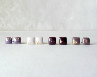 Purple Bridesmaids earring set- Violet post earrings gift pack- Combo of 4 earrings- Lilac theme wedding- Bridal jewelry- Elegant wedding