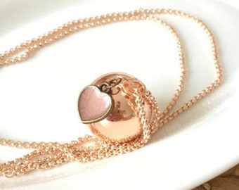 Pregnancy bola, rose gold plated maternity necklace, Harmony ball with pink heart charm, mom-to-be present,