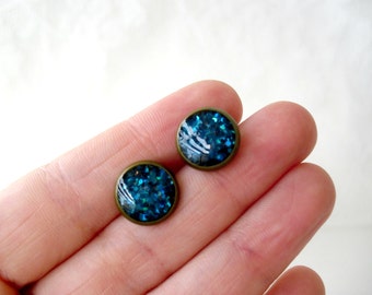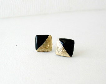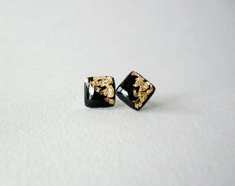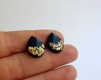 Blue Gold Diamond stud earrings- Navy blue with gold foil post earrings- Delicate jewelry- Preppy studs- Elegant everyday jewellery