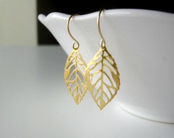 Delicate gold leaves earrings- Elegant dangle earrings- Dainty jewelry