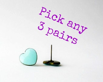 Set of three post earrings- Bridesmaids gift set- Pick any three studs- Special jewelry offer