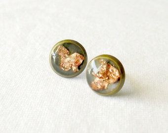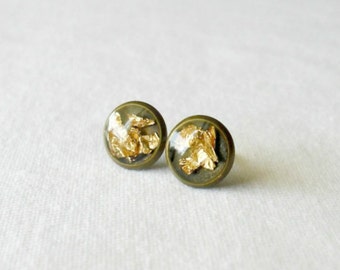 Gold flake post earrings- Unique stud earrings- Modern everyday jewelry