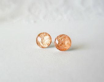 Rose gold disk post earrings-Golden round earrings- Feminine and modern jewelry
