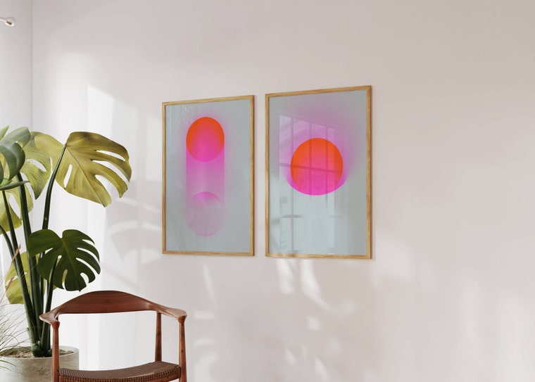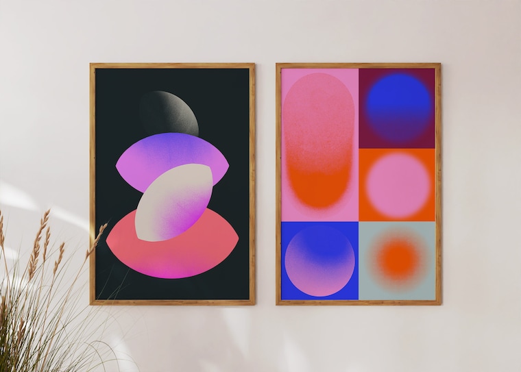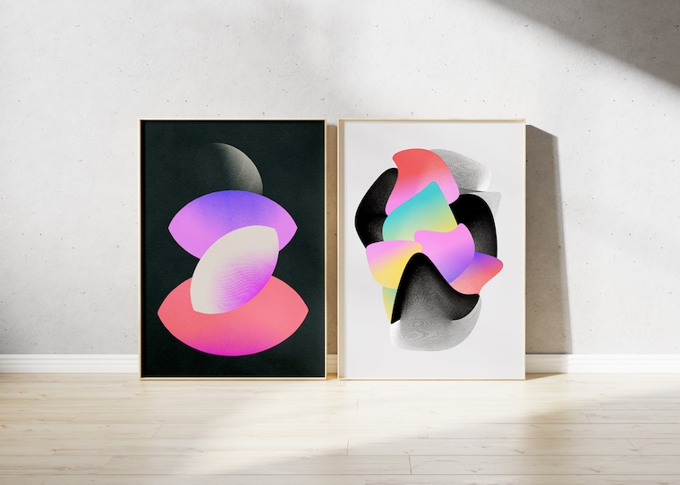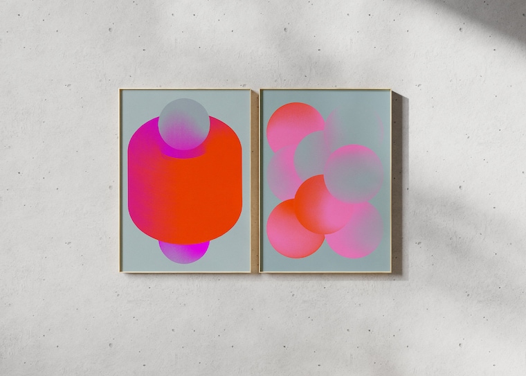 In his work, he focuses on the contrast between pop-colored and halftone graphics that seem rather out of time. A mixture of emotion and technique. The textures form a gradient at a distance, really break upon closer inspection, and come to life on large format prints.