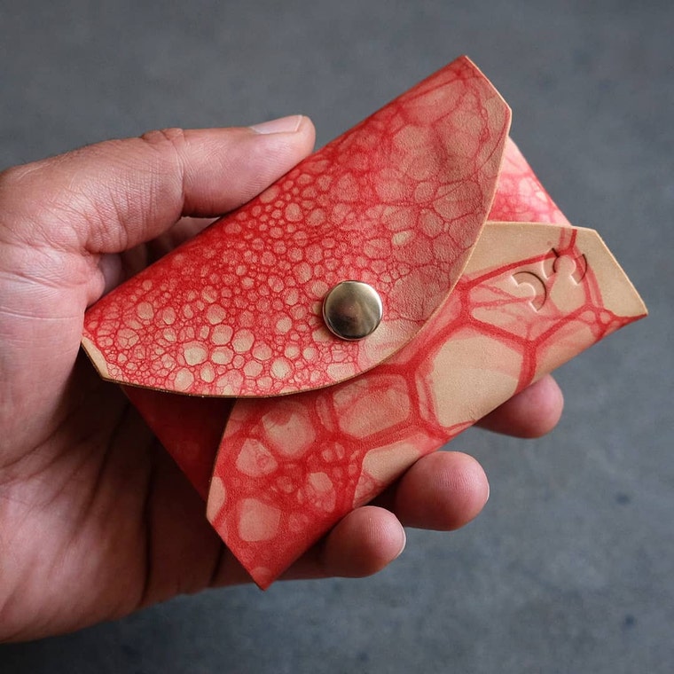 Bubble dye technique on natural veg-tanned leather. Unpredictable but always stunning results. :) -