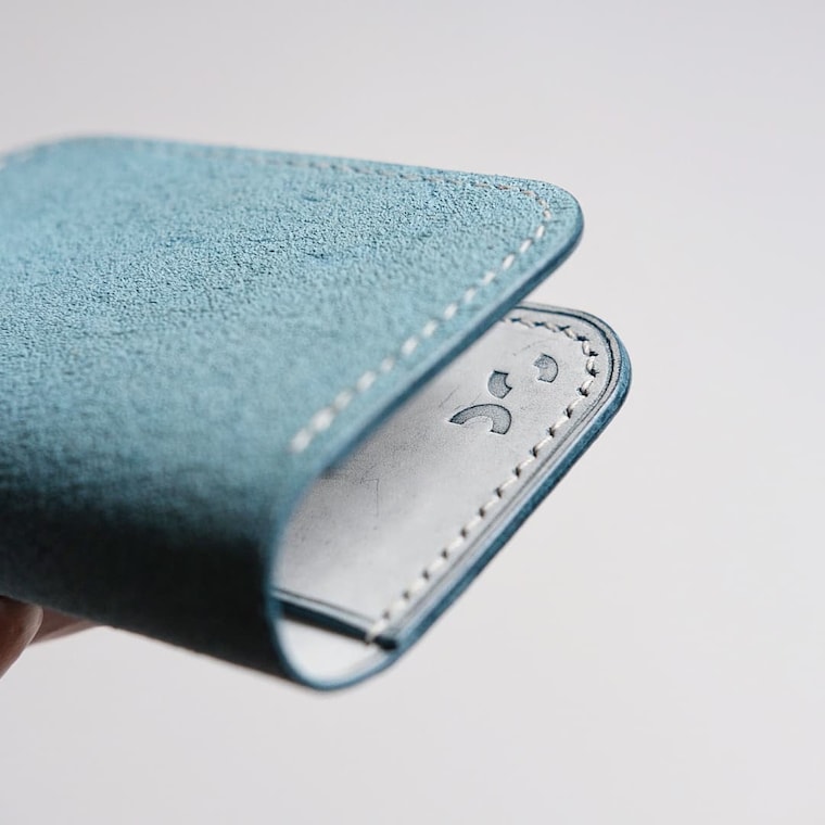 The Lieutenant Wallet in Ocean Ghost rough-out leather. Did you know that you can use leather with the flesh side out?:) -
