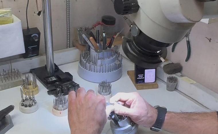 Every gemstone is hand set. Our eyes can only see so much, this machine helps us set every stone -