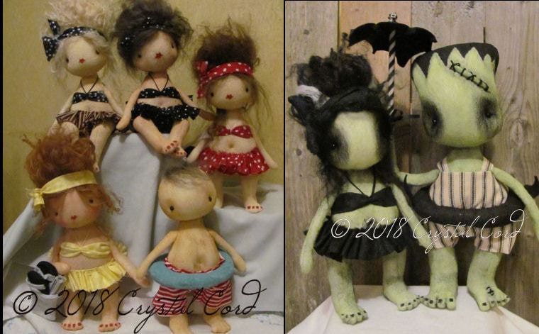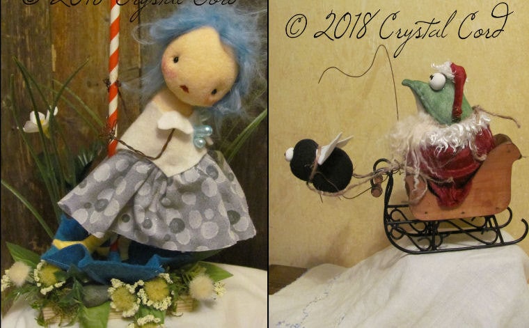 My dolls.... They have evolved over the years to the whimsy little treasures of today and I couldn't be happier. I love each and everyone. I'm a silly girl and I think that part of me is well portrayed in them.