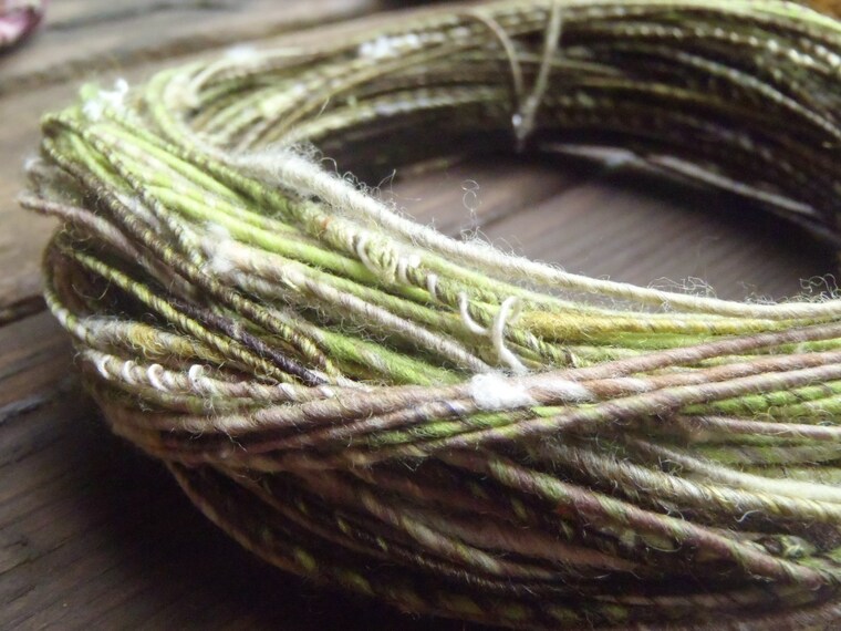 Wire core handspun art yarn, currently available in my shop. -