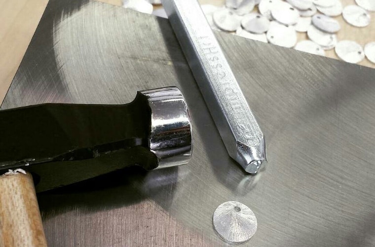 We also handstamp sterling silver initial tags to personalize our necklaces! :) -