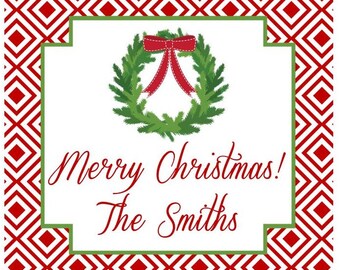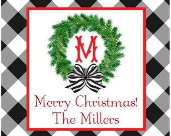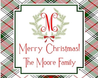 Preppy Christmas Tartan Wreath Sticker, Gift Enclosure, Tag, Address Label - Set of 24