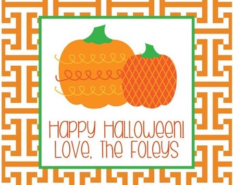 Halloween Geometric Pumpkin Sticker or Cardstock Gift Tag - Set of 24