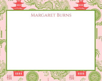 Personalized Notepads - PINK & GREEN PAGODA Chinoiserie - Set of 2 - Monogrammed Notepads