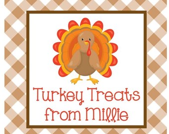 Thanksgiving Turkey Sticker, Gift Enclosure Card, Address Label - BROWN GINGHAM - Set of 24