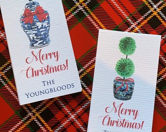 Blue and White Ginger Jar or Topiary Card Stock Tag, Enclosure Card - Set of 12 - Chinoiserie