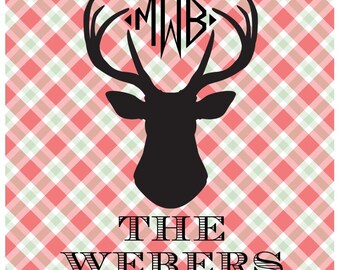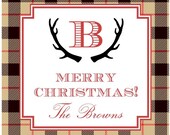 Christmas Holiday Sticker, Gift Enclosure Card, Address Label - PLAID DEER - Set of 24
