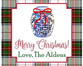 Ginger Jar in Plaid Sticker, Card Stock Tag, Enclosure, Address Label - Set of 24 -Double Happiness