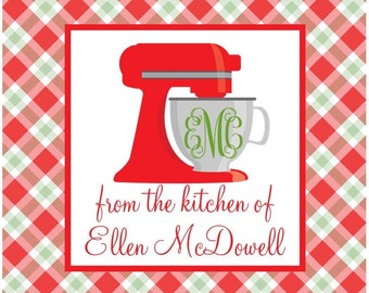 Christmas Kitchen Sticker or Tag with Monogrammed Mixer - Set of 24