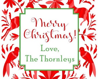 Christmas Red Otomi Sticker, Card Stock Tag, Enclosure, Address Label - Set of 24