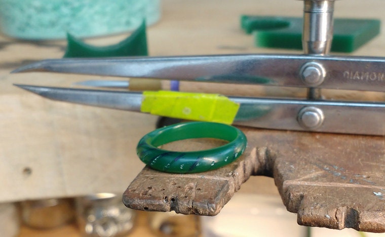 Not usually this tidy, my self-built workbench is where I carve and construct all my jewellery -