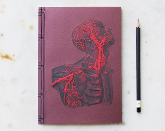 Anatomy Journal. Circulatory System of the Human Body. Anatomical Embroidered Notebook. Science Art Journal. Doctor's Gift. Anatomy Art