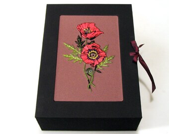 Embroidered Memory Box. Poppies. A Handmade One of A Kind Box to keep your precious Memories. Mixed Media Art Box. Keepsake Box
