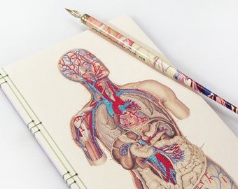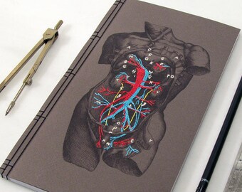 Human Anatomy Journal. Dissection of a Male Torso. Anatomical Embroidered Notebook. Science Art Journal. Doctor's Gift. Medical Student