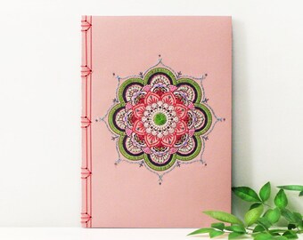 Mandala Notebook. Embroidered Notebook. Mandala Journal. Yoga Gift. Boho Gift. Sacred Geometry. Art Journal. Pink Journal. Bohemian Journal
