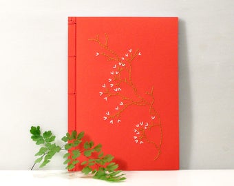 Sakura. Embroidered Notebook. Japanese Journal. Cherry Flower Notebook. Japanese Stab Bound. Floral Spring Journal. A5 Japanese Notebook
