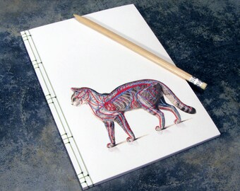 Cat Anatomy Journal. Embroidered A5 Notebook. Feline Anatomy. Science Art Journal. Anatomical Book. Veterinary Gift. Medicine Stitch Art