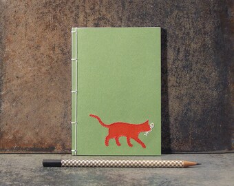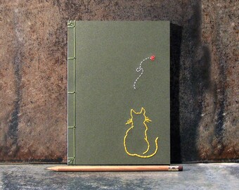 Cat Journal. Cat Notebook. Embroidered Notebook. Cat Lover Journal. Cat Lovers Notebook. Cute Cat Notebook. A5 Notebook. Stab Bound Journal