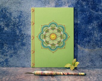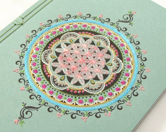 Mandala Journal. Embroidered Notebook. Mandala Notebook. Mandala Art. Yoga Gift. Yoga Notebook. Boho Art. Yoga Art. Green Mandala. Boho Gift