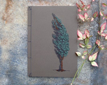 Cypress Tree. Hand Embroidered Notebook. Tree Journal. Botanical Journal. Nature Art Notebook. Stitch Art Journal. Gift for Him. Men's Gift