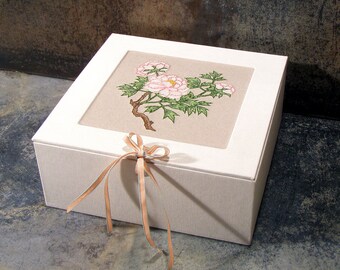 Embroidered Keepsake Box. Japanese Peony. A Handmade Memory Box to keep your Precious Treasures. Mixed Media Art Box.