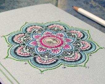 Mandala Journal. Yoga Notebook. Mint Mandala. Embroidered A5 Journal. Boho Notebook. Mandala Journal. Colorful Boho Journal. Stitch Art