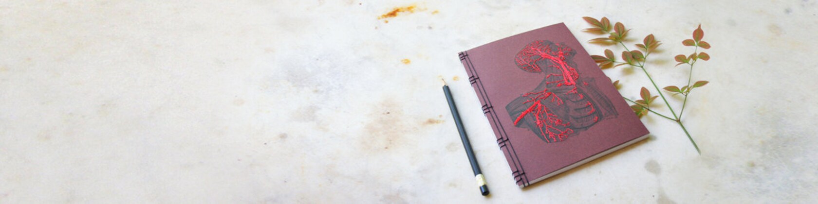Red Heart Anatomy. Anatomical Heart Notebook. Embroidered Japanese Notebook. Valentine's . Science Art Journal. Men's Book. Love Journal