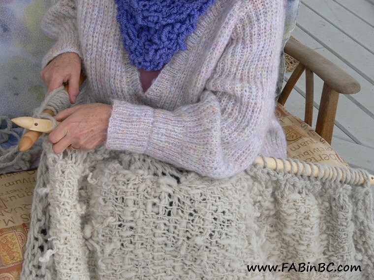 You might notice that we don’t actually have much alpaca yarn in store. That’s because we don’t have a large supply of it. But we love working with it and you will find many videos and articles on our main website www.FABinBC.com showing the many and varied projects involving weaving, spinning, felting, knitting, crochet and even fibre processing.