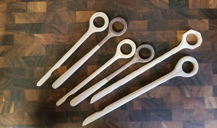 BEFORE Oiling our Tea Stir Sticks and Long Stir Sticks -