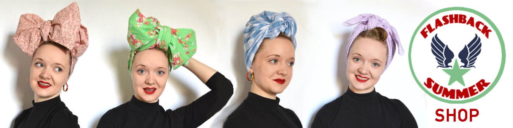 This shop is an extension of Flashback Summer, a vintage lifestyle blog with an intercultural twist. While I hope to expand into some more offerings in the future, my bread and butter now is head wraps! A necessary part of the wardrobes of women from many cultures and over many centuries, I've selected fabrics and prints that will coordinate especially well with vintage-inspired looks.