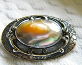 5 out of 5 starsThis brooch was one of several on Etsy I was drooling over, being a lover of abalone blisters, silver, and tiny, hand made objects of age. I bought this one over the others for several reasons: The Fleabitten shop seemed less pretentious & more eclectic than the other shops, and wasn't a specialty, antique-y kind of place, and the price was more realistic for me than the others. The pin arrived quickly, and when unwrapping this treasure, I found it carefully and artfully packed- the brooch was even pinned through a lovely piece of vintage lace and accompanied by a thoughtful note. The brooch was perfect in every way. I swear I felt I had received a very special gift, picked especially for me, and wrapped to reflect it's special worth. I had!