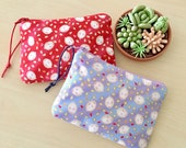 5 out of 5 starsThis one is my favourite fabric. These little pouches feel great in your hand and look perfect. The d-ring is good for attaching your own strap, chain, loop, whatever. I clip my bus pass case to it so I know I have all my important things together! Thanks florspace for my little beauties, and for the bonus extra :) These would make excellent stocking stuffers. Cannot speak highly enough of the quality of the product and service from this seller.