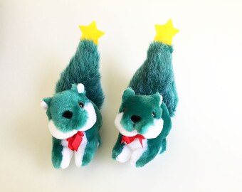 Pair of Christmas Squirrels, Douglas Fir Tree Tail, Applause, Star Christmas Tree Topper, Vintage Christmas