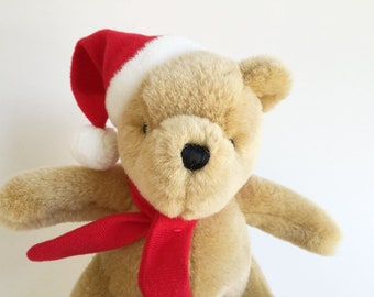 Christmas Winnie the Pooh, Santa hat & scarf, Classic Pooh Gund, Stuffed Animal, Vintage Plush, 90s Toy