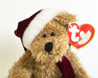 Christmas Teddy Bear, TY, Jangle, Beanie Babies, Santa Hat with Bell, Scarf, 1993, 9"